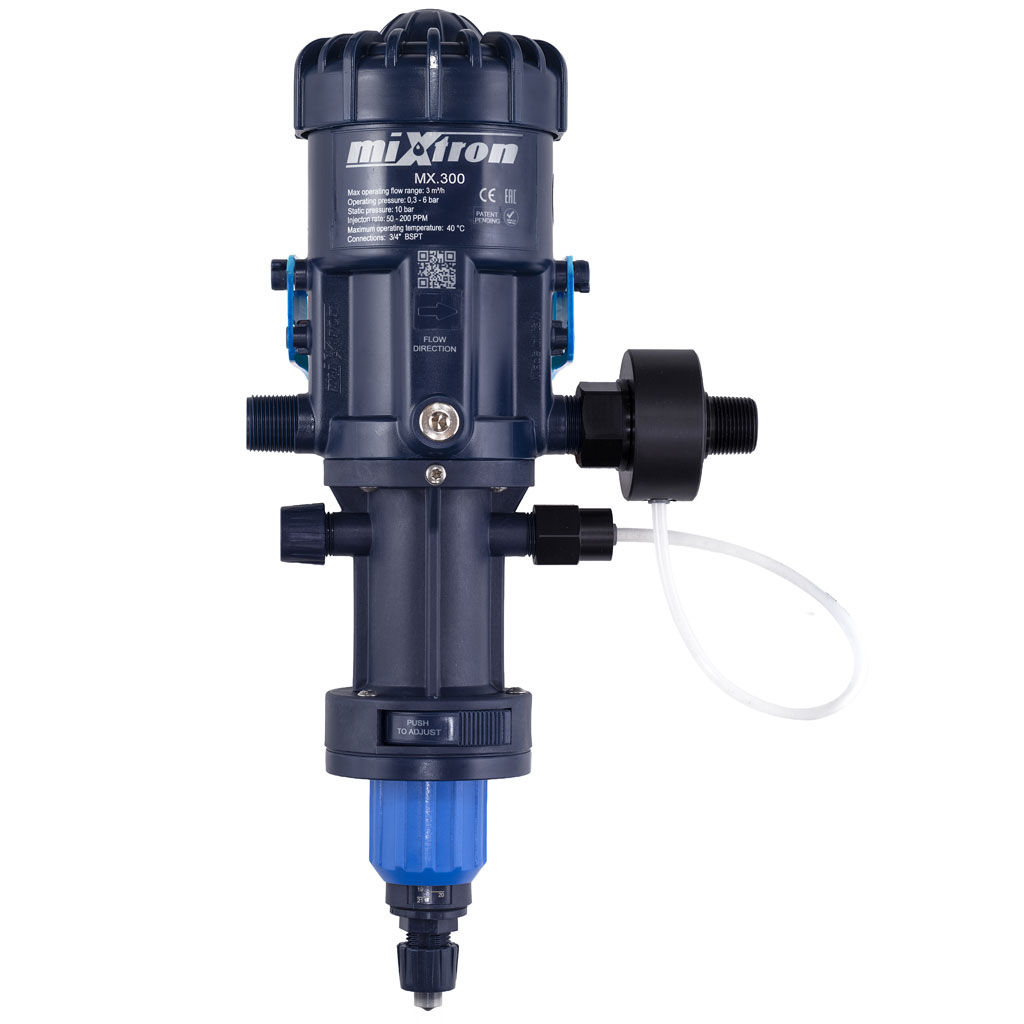 La pompa dosatrice modello MX.300.PP25 non necessita di nessuna alimentazione elettrica. Si tratta di una soluzione versatile e affidabile per il dosaggio di liquidi. Grazie al suo rapporto di dosaggio flessibile e alla pressione di lavoro compresa tra 0,3 e 6 bar, è adatta a la disinfezione dell’acqua. La sua elevata resistenza è garantita dai componenti metallici in AISI 316 e Duplex, mentre i tecnopolimeri di alta qualità assicurano una lunga durata. La pompa può essere installata sospesa a parete o direttamente sul fusto, offrendo massima flessibilità e sicurezza. Pressione di picco massima di 10 bar e temperatura operativa tra 5°C e 40°C.